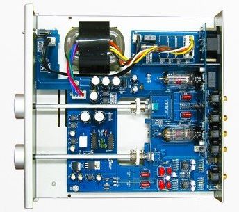 フラットアンプ部には12AU7×2、電源部のトランスには低漏洩磁束のRコアトランス採用しています。
